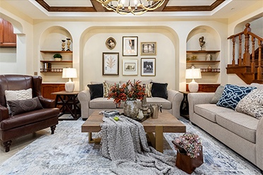 布藝的沙發(fā)、古樸的箱柜、各種飾品,美式元素并不是簡單的堆砌。物品與色彩、與紋理、元素的搭配,是美式風(fēng)格的關(guān)鍵,多而不雜,平衡有序。